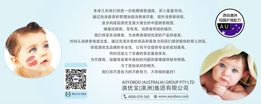 AOYOBOO(澳優(yōu)寶)是來自澳洲的著名母嬰用品品牌,公司創(chuàng)立于1988年,公司總部以及全球研發(fā)中心和全球運作中心則位于澳大利亞悉尼。由澳洲自然科學(xué)研究院與皮膚科、產(chǎn)科、小兒皮膚科專家共同研究開發(fā)、專門針對孕產(chǎn)婦、新生兒及嬰幼兒時期的敏感嬌嫩肌膚而設(shè)計的低刺激高功能護膚用品。自公司創(chuàng)立以來,一直秉承愛的理念,致力于為消費者提供高品質(zhì)和種類齊全的母嬰用品和服務(wù),產(chǎn)品涵蓋了母乳喂養(yǎng)、奶瓶奶嘴、寶寶肌膚護理、衣物清洗等撫育寶寶的方方面面。AOYOBOO ( 澳優(yōu)寶 ) 自2018 年正式進入中國市場之后,市場規(guī)模和生產(chǎn)規(guī)模不斷擴大,如今,澳優(yōu)寶在中國與多家一流廠家合作,引進國外最先進配方以及原材料,嚴(yán)格按照澳洲生產(chǎn)工藝來執(zhí)行管理。