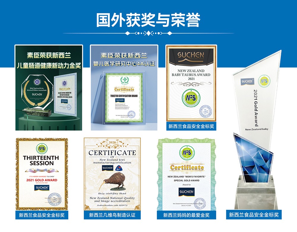 素臣多次斬獲國(guó)際健康獎(jiǎng)項(xiàng):被新西蘭營(yíng)養(yǎng)食品安全研究中心認(rèn)證為全球健康與安全品牌,獲得新西蘭嬰兒醫(yī)學(xué)研究中心的國(guó)際幼兒腸道活力科學(xué)獎(jiǎng)和 4A 認(rèn)證。