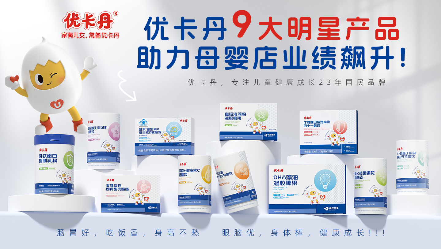 2022年,優(yōu)卡丹布局大健康行業(yè),開啟“制藥+功能性母嬰”雙航母格局。優(yōu)卡丹大健康誕生至今,始終秉承嚴苛制藥標準,嚴謹定義功能性健康產(chǎn)品,從科技研發(fā)、原料探尋、科學生產(chǎn)出發(fā),專研更適合中國嬰幼兒和兒童青少年成長的零輔食、保健膳食、洗護日化、日常用品等家中常備的功效調(diào)理型安心產(chǎn)品,用“醫(yī)研育養(yǎng),呵護成長”的品牌理念,“以更好為更優(yōu)”的品牌精神,為中國家庭帶來更可靠、更值得信賴的健康選擇,全方位守護中國家庭兒女健康成長。醫(yī)研育養(yǎng),呵護成長!家有兒女,常備優(yōu)卡丹!