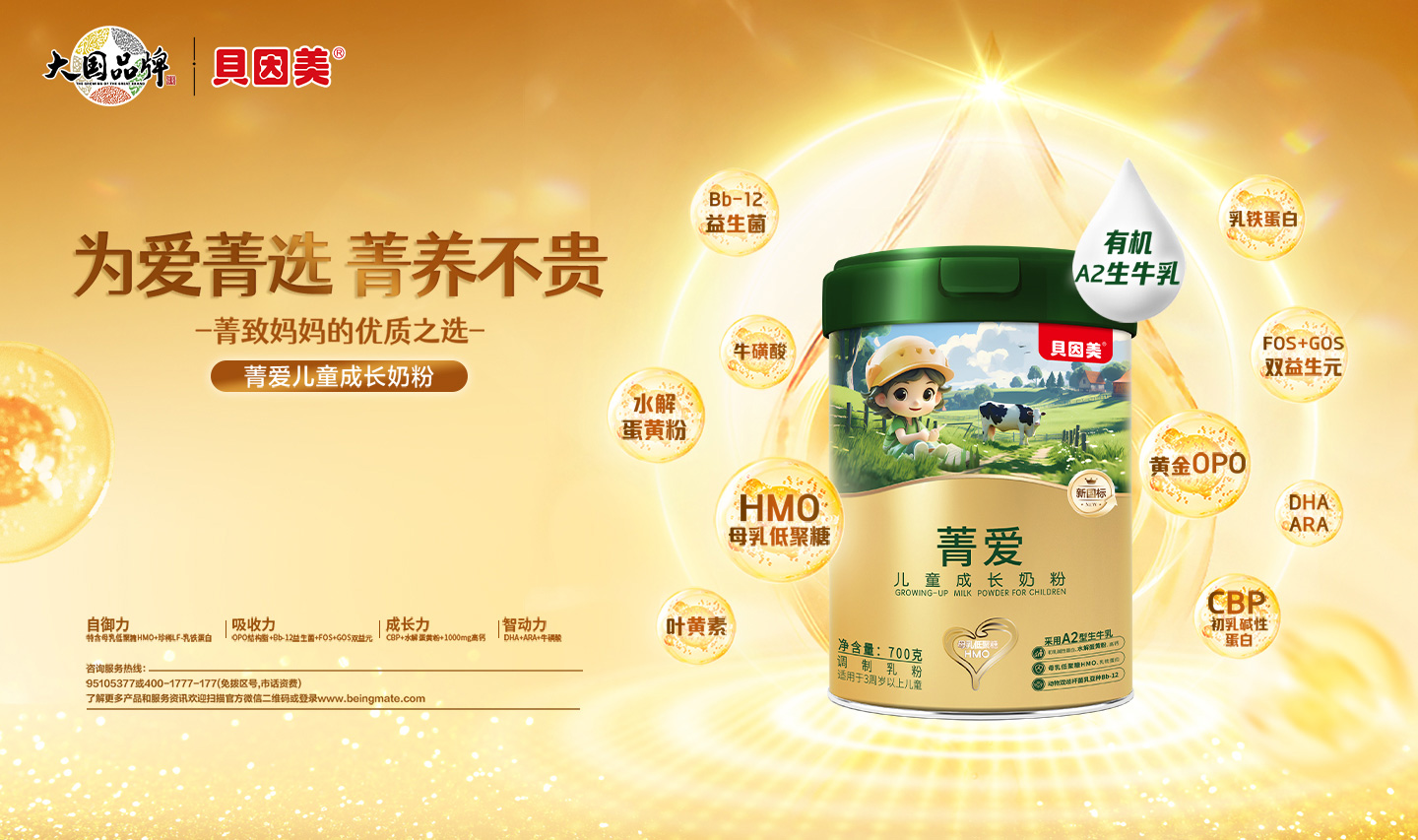 美廬優(yōu)培幼兒配方奶粉,優(yōu)培草飼奶源,好奶源造好奶粉!五大營養(yǎng)群,超牛保護(hù)力、傧Γ旱途郯肴樘、低聚果糖、乳雙歧桿菌HN019;②骨骼力:酪蛋白磷酸肽、維生素D、維生素K;③自護(hù)力:乳鐵蛋白、核苷酸;④認(rèn)知力:膽堿、;撬;⑤視護(hù)力:葉黃素、維生素A。全面營養(yǎng)守護(hù),守護(hù)成長健康,萬千媽媽的信賴之選!