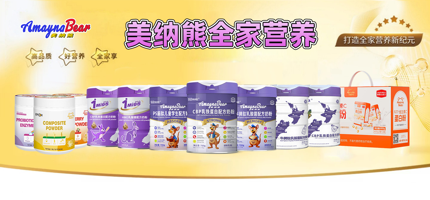 奶粉系列甄選新西蘭優(yōu)質(zhì)進(jìn)口奶源與高原生牛乳,秉承“聚合全球優(yōu)質(zhì)營(yíng)養(yǎng),喂養(yǎng)中國(guó)寶寶”的品牌理念,產(chǎn)品涵蓋:AmaynaBear乳鐵蛋白兒童配方奶粉、AmaynaBear牛脾肽乳酸菌配方奶粉、美納熊牛脾肽乳酸菌配方奶粉、美納熊CBP乳鐵蛋白配方奶粉、美納熊PS腦肽兒童學(xué)生配方奶粉、1Mi95 HMO乳酸菌配方奶粉、1Mi95 CBP乳鐵蛋白配方奶粉等多款產(chǎn)品,全面支持兒童在自護(hù)力、成長(zhǎng)力、吸收力、認(rèn)知力和視護(hù)力等方面的多維營(yíng)養(yǎng)需求。