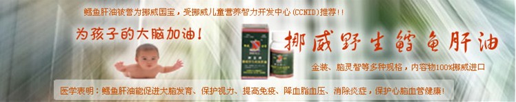 從2001年起,挪威連續(xù)6年被評(píng)為世界上生活質(zhì)量最高(最適宜居。┑膰,挪威人均用藥量只有 美國的三分之一。挪威政府十分重視孕婦和嬰幼兒的健康,2001年11月發(fā)布了為婦嬰保健人員和準(zhǔn)媽媽 寫的《嬰幼兒營養(yǎng)指導(dǎo)》修訂本,全面闡述孩子喂養(yǎng)問題,其中36處提到鱈魚肝油。你想知道挪威人怎樣喂養(yǎng)寶寶嗎?挪亞公司現(xiàn)有中譯本,可到公司索取。