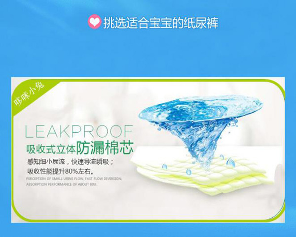 柔薄芯層結構,采用全芯高科技結構設計、薄軟透氣、零接觸摩擦感、不起坨、不斷層、輕輕的呵護,給寶寶體貼的愛。綿柔無紡布透氣底膜,及時散發(fā)悶熱濕氣,減少寶寶皮膚的刺激及傷害。全新3D打孔大珍珠面層,瞬間吸收,加倍干爽,連通吸收芯成(多層鎖水)系統(tǒng),有效吸收和鎖住更多尿液,讓寶寶屁屁更加干爽。雙重防漏立體設計,舒適柔軟貼合腿部,防止尿尿往兩邊側漏,給寶寶自由自在,盡情活動的舒爽空間。人性化合身曲線剪裁,專為中國寶寶設計的合身檔剪裁,更加貼合寶寶,腿部及臀部曲線,減少腿部摩擦與壓力。背部彈性腰圍貼身防后漏,無論寶寶坐、騎、爬等,大環(huán)腰彈性腰圍能自然伸縮,貼身服帖。