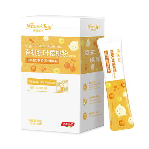主要原料:本品每袋(2g)含26.0mg維生素C,本品所用有機(jī)針葉櫻桃粉粉為法國(guó)進(jìn)口,每袋(2g)添加220mg有機(jī)針葉櫻桃粉,每袋(2g)添加低聚半乳糖(有機(jī))50mg