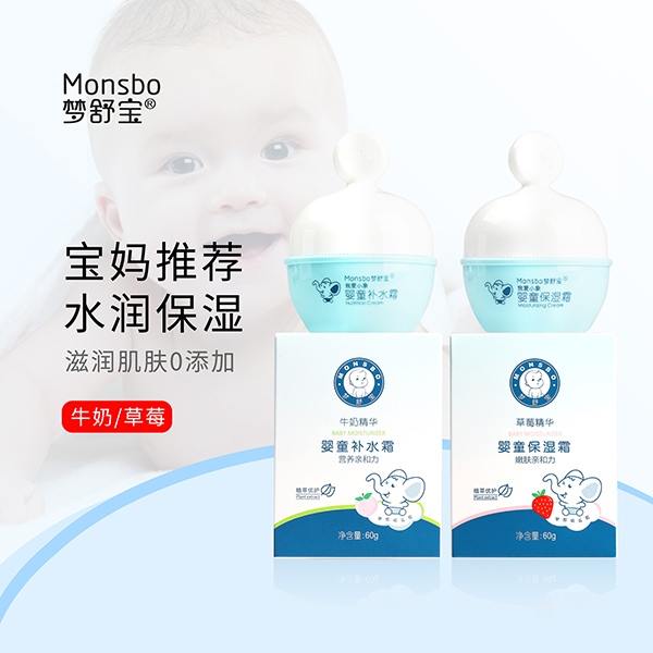 夢(mèng)舒寶嬰童保濕霜系列,有牛奶、草莓兩款單品,根據(jù)幼肌特點(diǎn)及皮膚護(hù)理需求精心研發(fā),添加豐富植物精粹,滋潤(rùn)肌膚,補(bǔ)水保濕,溫和舒緩,0添加,更放心。