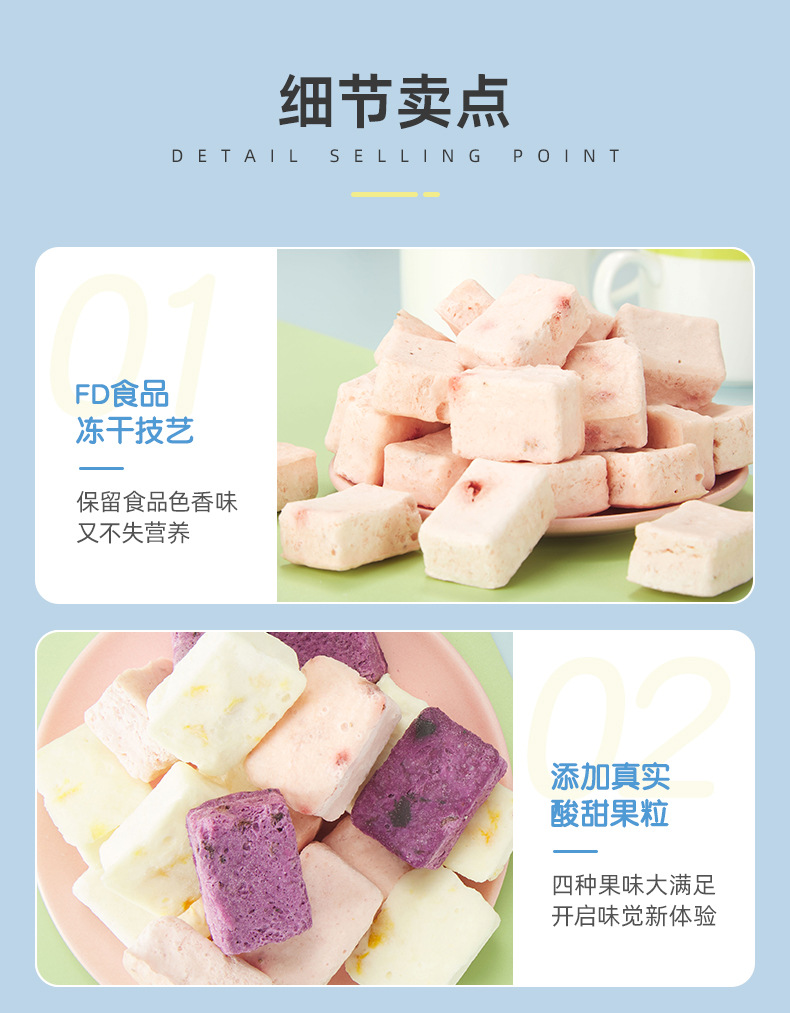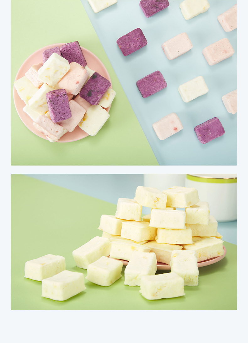 • OEM貼牌沖泡凍干酸奶塊1.2g/塊果粒益生菌塊即食代加工口味定制