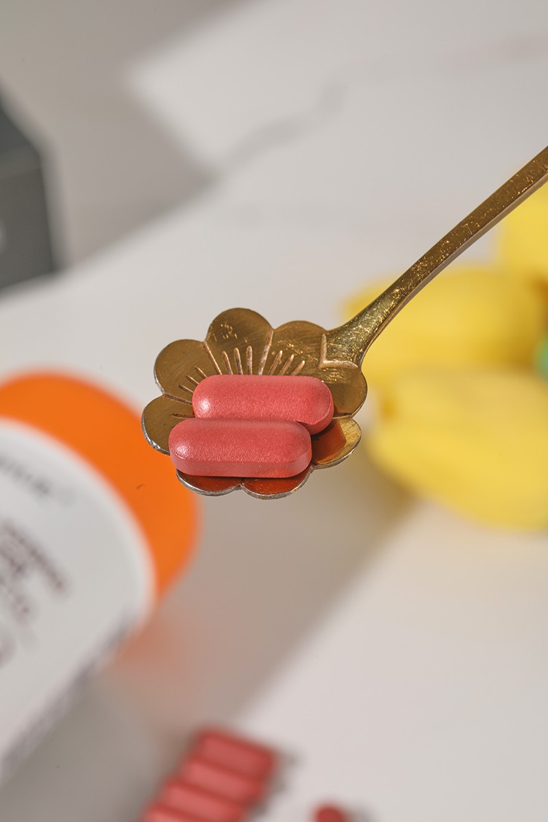 配料:山梨糖醇、明日葉20.25%、紅曲米、納豆12.5%、玉米淀粉、甜菜堿(天然提取)、地龍蛋白1.25%、微晶纖維素。
