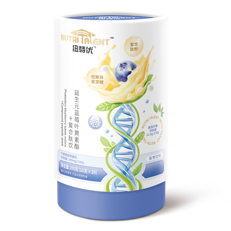 紐特優(yōu)益生元藍(lán)莓葉黃素酯+復(fù)合肽飲,膳食纖維添加量12g/100g,葉黃素酯微囊粉添加量100mg/100g,搭配復(fù)合肽粉、低聚異麥芽糖、山楂/枸杞等藥食同源成分,多重護(hù)眼營養(yǎng),守護(hù)視力健康。獨立小包裝,液態(tài)好吸收,即補即營養(yǎng),安全又美味!