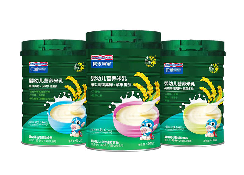 四季寶寶高鐵營養(yǎng)米乳,甄選優(yōu)質原料,采用先進工藝,鎖留營養(yǎng),口感細膩,米香純正。每百克含鐵6.6mg,二價鐵,更親和好吸收。該系列共三款單品,科學搭配不同食材,營養(yǎng)更豐富多元,滿足成長不同需求。高鐵高鈣+水解乳清蛋白,添加水解乳清蛋白粉、香蕉粉、酪蛋白磷酸肽CPP;高鐵高鈣高鋅+果蔬多維,添加菠菜、淮山、胡蘿卜、蘋果等;維C高鐵高鋅+蘋果番茄,添加酸棗仁粉、蘋果、番茄?羁顮I養(yǎng),口口美味。