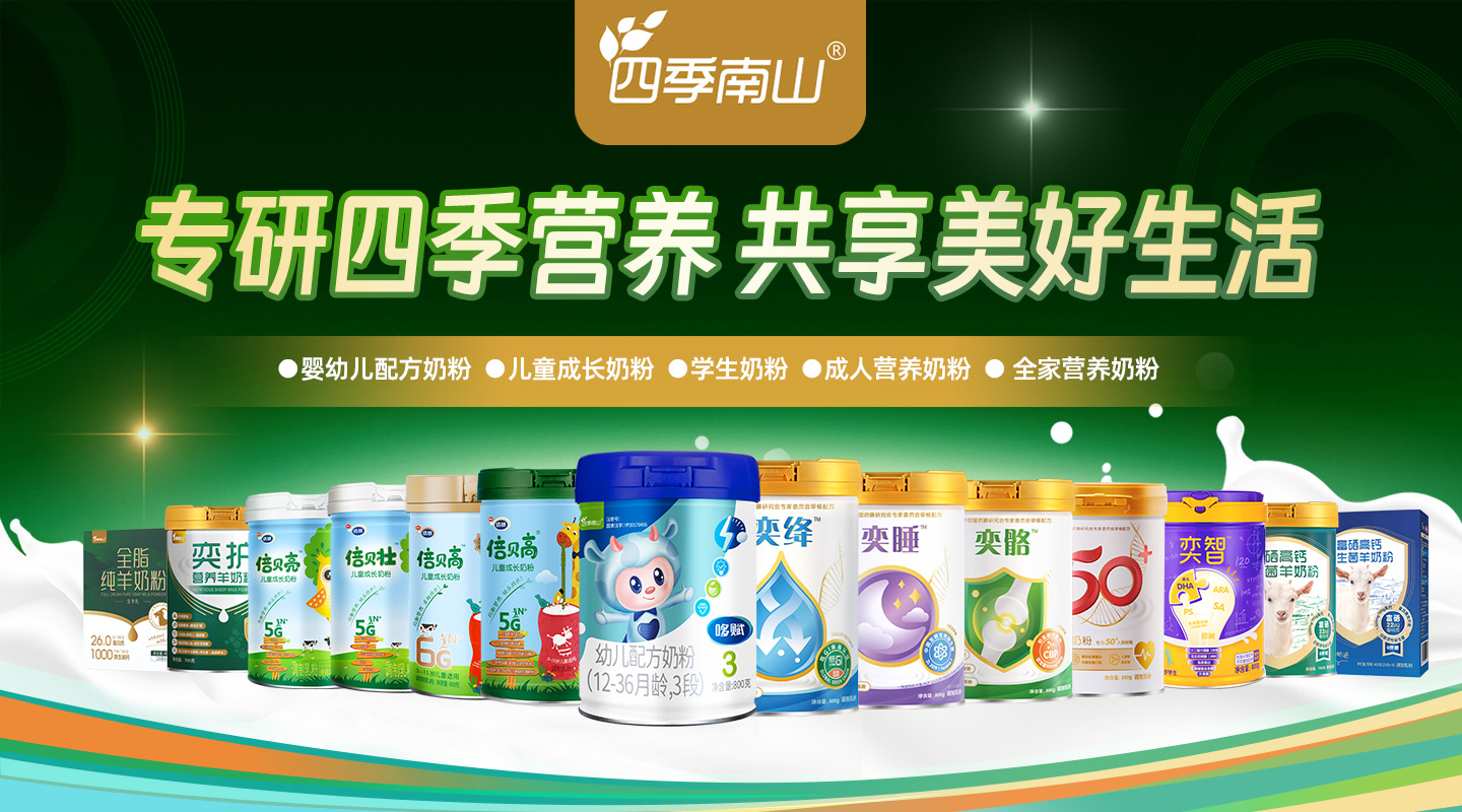 四季南山是一家集科研、生產(chǎn)、銷售、服務(wù)于一體,專注于全生命周期營養(yǎng)食品的集團(tuán)化公司。目前運(yùn)營四季南山、哆賦、領(lǐng)賦羊、倍慧、倍貝高、奕睡、南山等多個品牌,產(chǎn)品涉及嬰幼兒奶粉、兒童奶粉、學(xué)生奶粉、成人奶粉、純羊奶粉、中老年功能奶粉、全家奶粉等,為0-100歲全生命周期提供定制營養(yǎng),致力打造守護(hù)國民健康的高端營養(yǎng)品新標(biāo)桿。