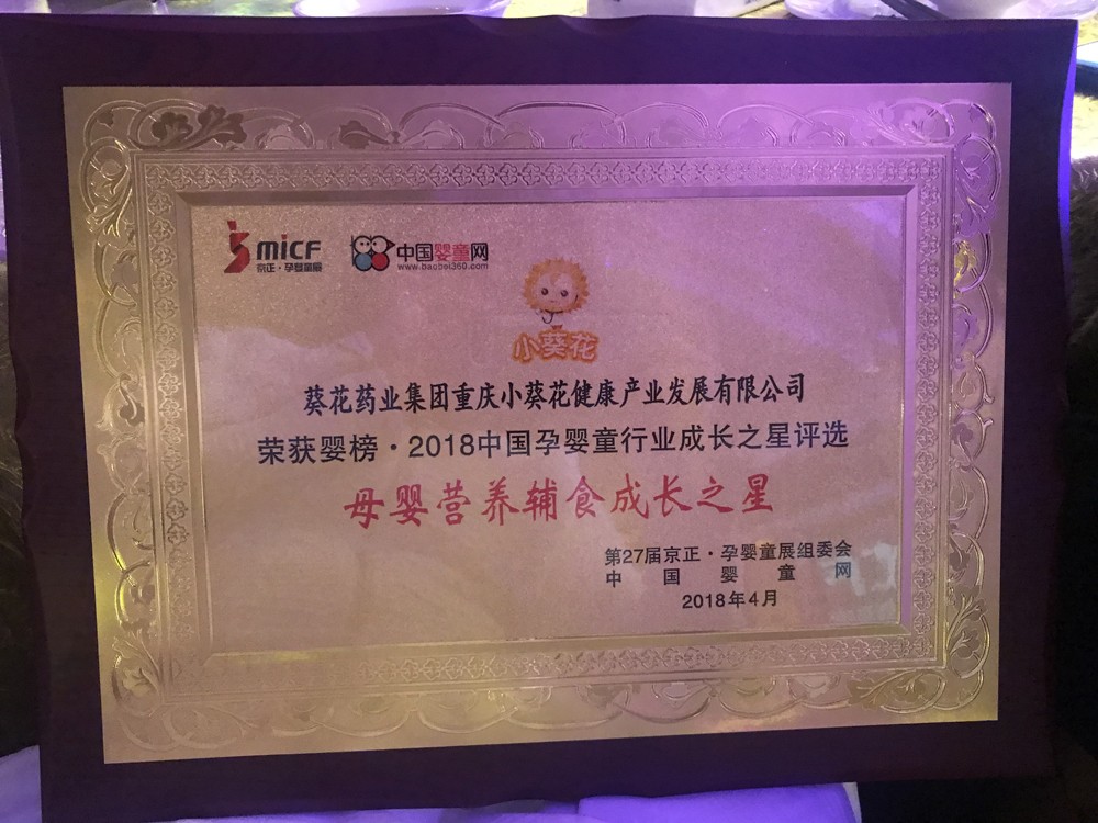 企業(yè)被世界衛(wèi)生組織兒童衛(wèi)生合作中心等四家單位聯(lián)合授予“兒童用藥安全突出貢獻(xiàn)單位”;“小葵花”品牌連續(xù)五屆榮登“健康中國(guó)-中國(guó)藥品品牌榜”,葵花牌小兒肺熱咳喘口服液/顆粒2017、2018、2019連續(xù)三年被中國(guó)非處方協(xié)會(huì)認(rèn)定為“中成藥兒科感冒咳嗽類第一名”。