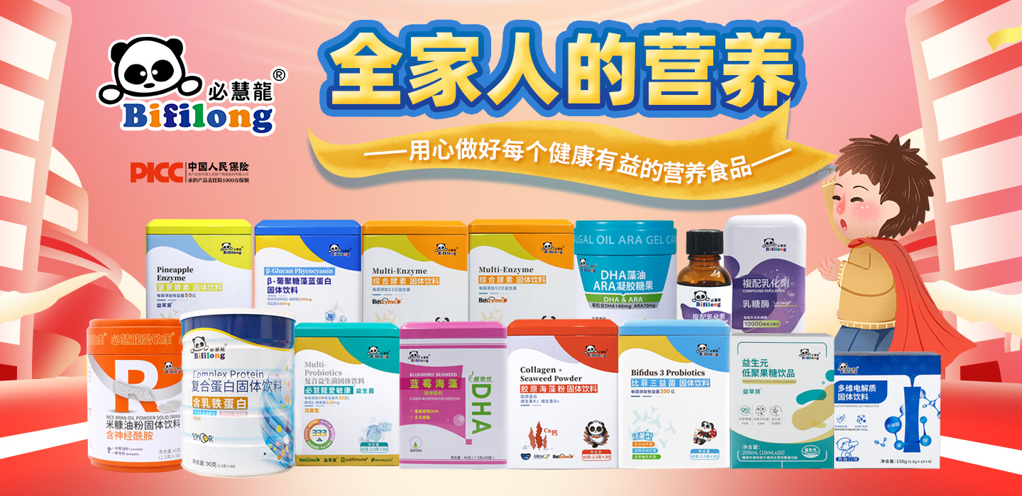 必慧龍主營(yíng)研究開(kāi)發(fā)酵素、益生菌以及具備強(qiáng)效功能性營(yíng)養(yǎng)食品,從中國(guó)臺(tái)灣起源,立足大陸,放眼全球,結(jié)合產(chǎn)、官、學(xué)、研能量持續(xù)研究開(kāi)發(fā),秉承著專業(yè)以及嚴(yán)謹(jǐn)?shù)膽B(tài)度進(jìn)行產(chǎn)品開(kāi)發(fā)。其產(chǎn)品經(jīng)營(yíng)包含嬰童營(yíng)養(yǎng)食品、孕期及產(chǎn)后營(yíng)養(yǎng)食品、功能性營(yíng)養(yǎng)食品、特殊營(yíng)養(yǎng)食品、運(yùn)動(dòng)營(yíng)養(yǎng)食品等,是國(guó)內(nèi)為數(shù)不多的功能性營(yíng)養(yǎng)品品牌,始終把品質(zhì)、健康、營(yíng)養(yǎng)、安全放在第一位、堅(jiān)持營(yíng)養(yǎng)至上,安全第一的健康理念,提供優(yōu)質(zhì)的產(chǎn)品服務(wù),真正的把健康有益的營(yíng)養(yǎng)食品植入每個(gè)人的生活,成立至今一直堅(jiān)持致力健康營(yíng)養(yǎng)事業(yè),堅(jiān)持每一個(gè)產(chǎn)品的研發(fā)初衷都由營(yíng)養(yǎng)、健康、安全第一的理念出發(fā),用心做好每個(gè)健康有益的營(yíng)養(yǎng)食品。