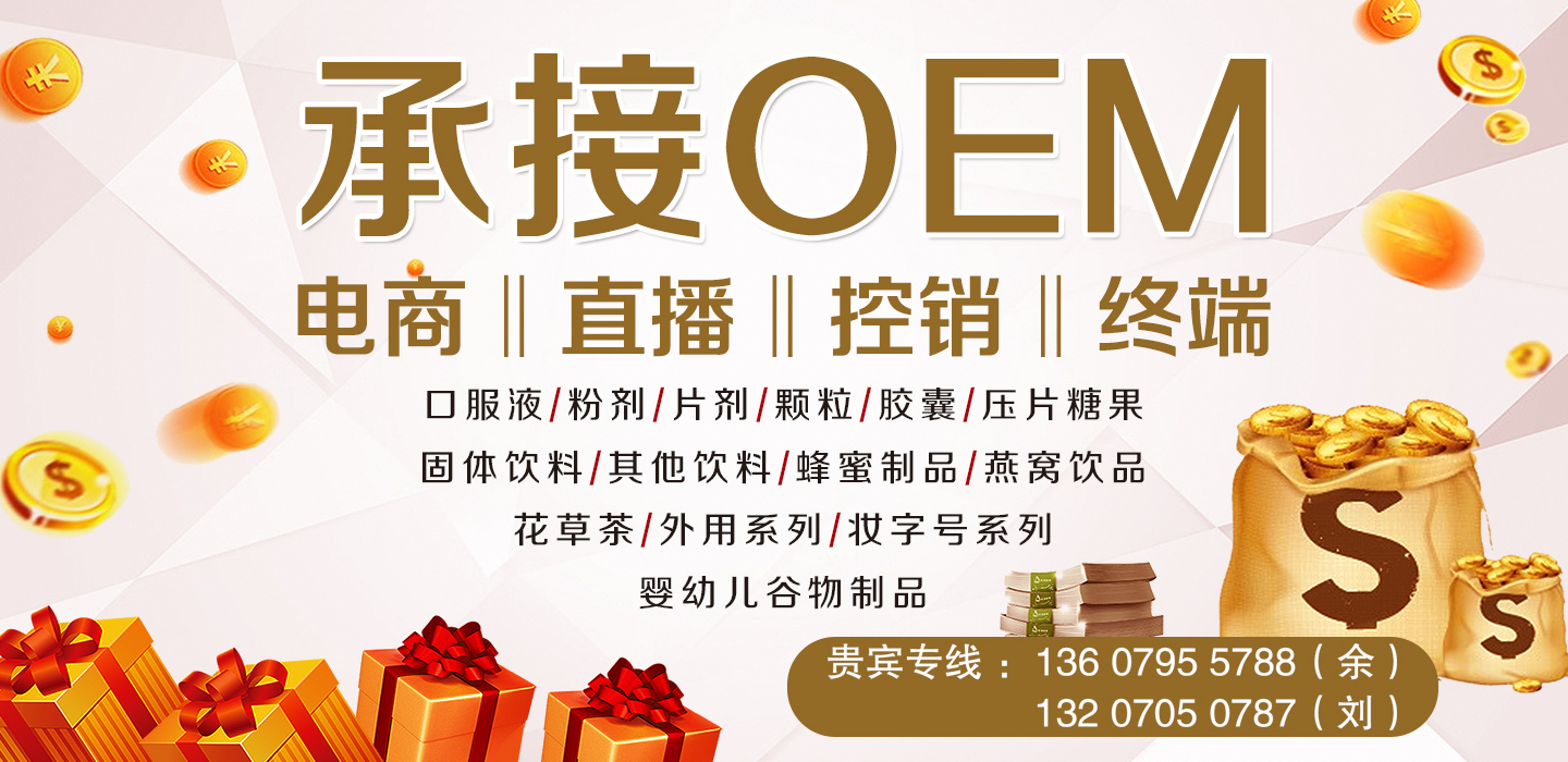 承接各類營(yíng)養(yǎng)品OEM/ODM,包括口服液/粉劑/片劑/顆粒/膠囊/壓片糖果固體飲料/其他飲料/蜂蜜制品/燕窩飲品花草茶/外用系列/妝字號(hào)系列嬰幼兒谷物制品。