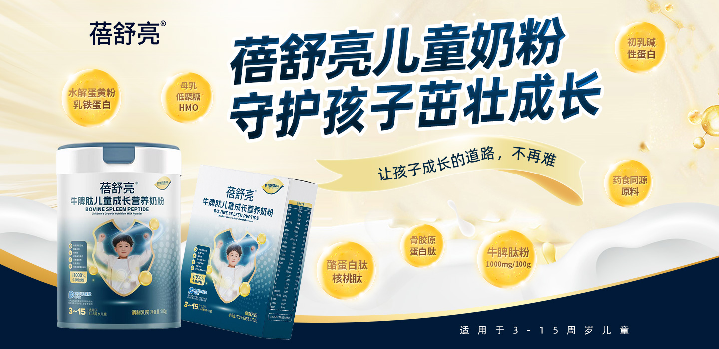 蓓舒亮牛脾肽兒童成長(zhǎng)營(yíng)養(yǎng)奶粉,適用于3-15周歲兒童,添加牛脾肽粉、水解蛋黃粉、初乳堿性蛋白、酪蛋白肽、核桃肽粉、N-乙酰神經(jīng)氨酸、雞內(nèi)金粉、菊粉、茯苓粉、山藥粉、山楂粉、蓮子粉、薏苡仁粉,藥食同源配方,科學(xué)配比,均衡營(yíng)養(yǎng),全面滿足成長(zhǎng)。