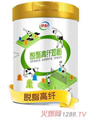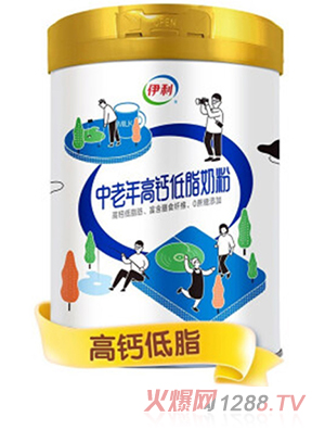 伊利中老年高鈣低脂奶粉采用脫脂奶粉為第一奶基原料,配方添加脫鹽乳清粉、膳食纖維和多種維生素、礦物質(zhì),為低脂高鈣配方。