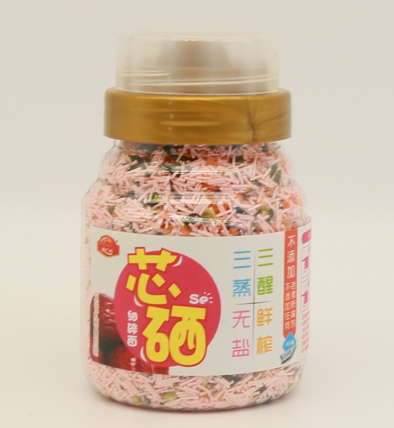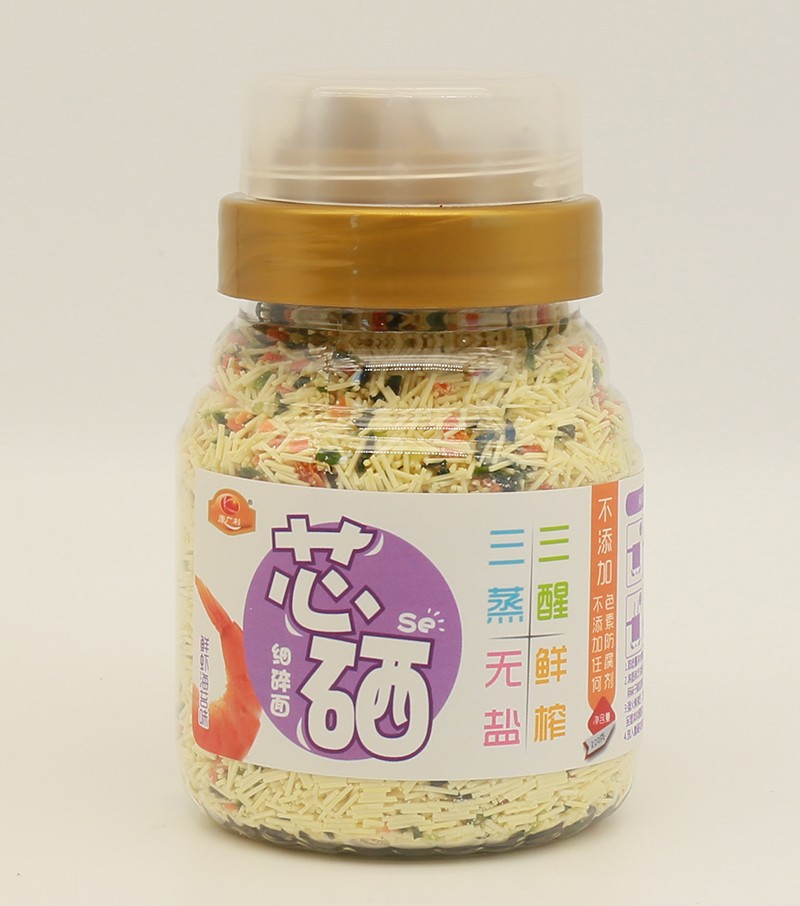 康廣利芯硒細碎面,采用麥芯粉、鮮榨蔬菜汁等優(yōu)質(zhì)食材制作,經(jīng)獨特用心調(diào)制,淡淡的雜糧和蔬菜香味進入面條中,綠豆薏米菠菜味、五谷紅棗山藥味、鮮蝦海苔味、百合蓮子口味、多彩口味,多種不同口味,讓寶寶的味蕾開始旅行。三醒三蒸,無鹽鮮榨,不含色素、防腐劑、增白劑,健康安全。易煮不渾湯,造型獨特,面體爽滑,口感美味。罐裝設(shè)計,易于存儲,干凈衛(wèi)生,食用方便。