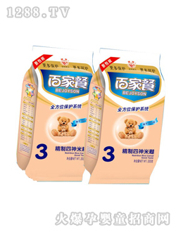 百家餐營養(yǎng)專家根據(jù)當(dāng)代的生理特征及飲食習(xí)慣,研制出專供中國bao--bao的百家餐雙歧因子米粉。百家餐雙歧因子米粉產(chǎn)品精選各種有機(jī)食品為主要原料,富含多種維生素及礦物質(zhì),營養(yǎng)、健康、安全有保障。