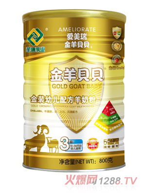 愛(ài)美瑞金羊貝貝5優(yōu)抵抗力、5好智商優(yōu)好配方配方羊奶粉,特別添加乳鐵蛋白、微藻DHA、ARA、5種核苷酸、低聚半乳糖GOS、低聚果糖FOS、膽堿、;撬帷-肉堿及鈣、鐵、鋅、葉黃素、維生素A、維生素B族、維生素C等營(yíng)養(yǎng)因子。