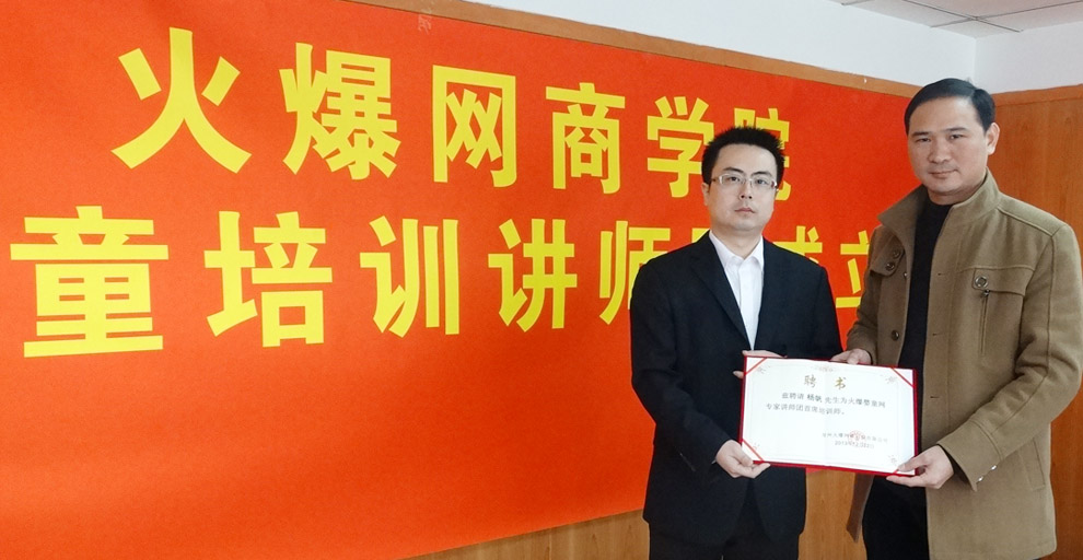 2013年12月22日,火爆網(wǎng)商學院嬰童培訓講師團在鄭州正式成立,茲聘孕嬰童實戰(zhàn)咨詢培訓專家楊帆、亞洲成功學導師—陳安之老師弟子丁建、嬰童行業(yè)營銷咨詢顧問杜鳳林為培訓講師,會議期間火爆網(wǎng)董總及到場的專家講師分別對本次講師團的成立發(fā)表了感言,會后各位嬰童行業(yè)領導及廠家代表探討嬰童行業(yè)未來發(fā)展,火爆網(wǎng)商學院嬰童培訓講師團成立的目的是為了打開線下推廣宣傳的渠道,幫助嬰童店主及廠家更深入的了解嬰童行業(yè)的發(fā)展。