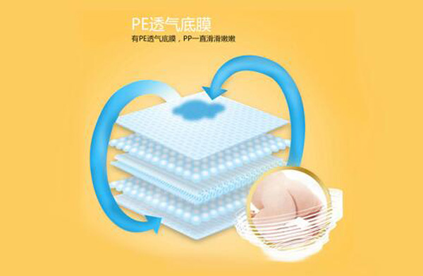 5.采用德國技術(shù),芯體隱藏雙弧形導(dǎo)流槽,不僅可以加速尿液雙向?qū)Я鳎屇蛞悍植几鶆,雙弧形切槽還可以讓產(chǎn)品在吸收尿液后更貼和,不聚堆,有效防止0型腿。