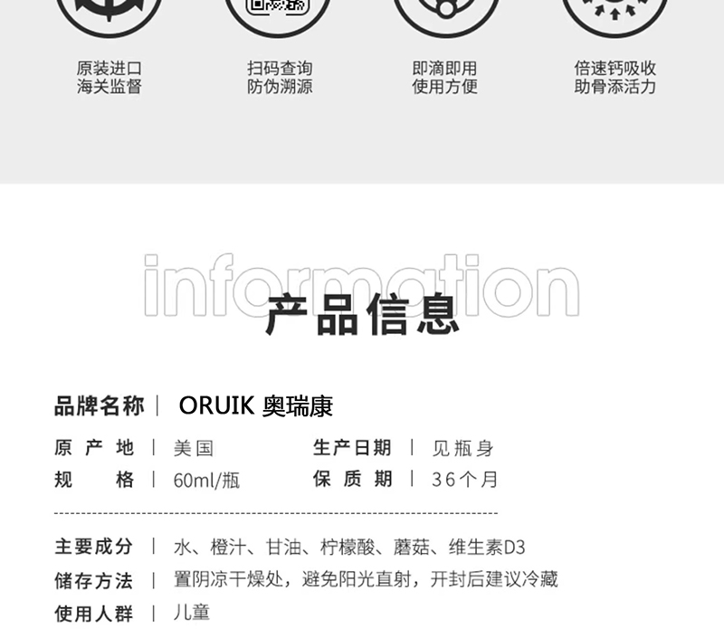2018年美國奧瑞康健康產(chǎn)業(yè)集團與美國奧蘭加利制藥公司合作,共同研發(fā)了ORUIK嬰童營養(yǎng)補充劑系列,其產(chǎn)品采用天然提取、先進工藝、科學配方研制而成。