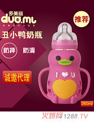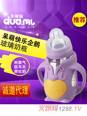 多美麗是卡通奶瓶界的典范,它所研發(fā)和生產(chǎn)的搗蛋豬、大嘴猴、小鱷魚、貓頭鷹等充滿童趣的卡通奶瓶在市場(chǎng)上極為暢銷,消費(fèi)者對(duì)它的喜愛既源自于可愛萌動(dòng)的造型,又來自對(duì)產(chǎn)品安全性和使用舒適性的信賴。多美麗卡通奶瓶的瓶身一般采用高硼硅晶鉆玻璃制成,瓶身包裹一層卡通形象設(shè)計(jì)的硅膠“外套”,使奶瓶不僅安全可靠,而且防摔防爆,真正的集實(shí)用性與美觀性于一身。