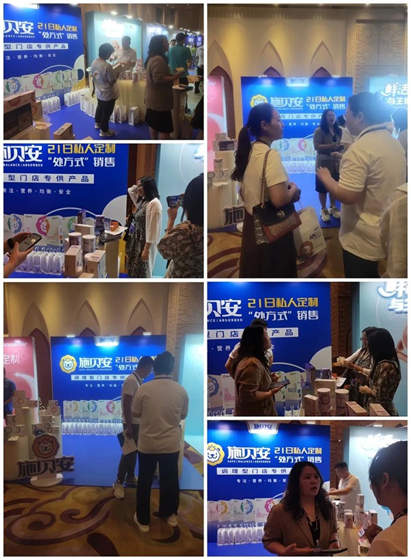 在展位上,施貝安可謂是搶眼十足,創(chuàng)新獨特的“處方式”營銷,讓參會人員紛紛駐足咨詢洽談。施貝安華南大區(qū)總監(jiān)耿丹老師帶領(lǐng)省區(qū)經(jīng)理、商學院金牌講師坐鎮(zhèn)現(xiàn)場,專業(yè)講解施貝安產(chǎn)品以及搭配、模式,同時將試吃進行到底,讓參會人員親身體驗施貝安產(chǎn)品新玩法!